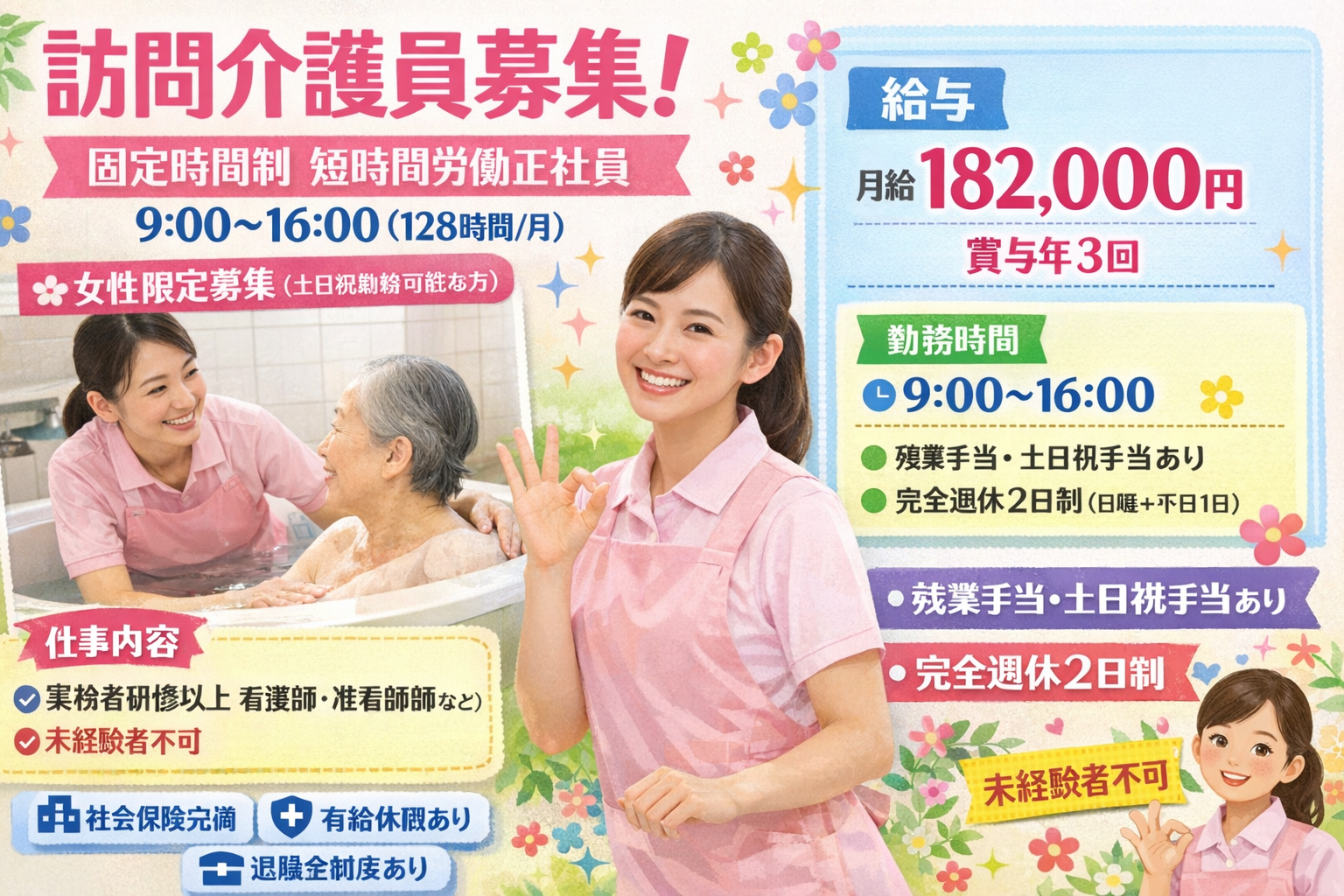 事務所 08:00〜17:00 定休日:土日祝 介護業務部 07:00〜18:00 年中無休 |